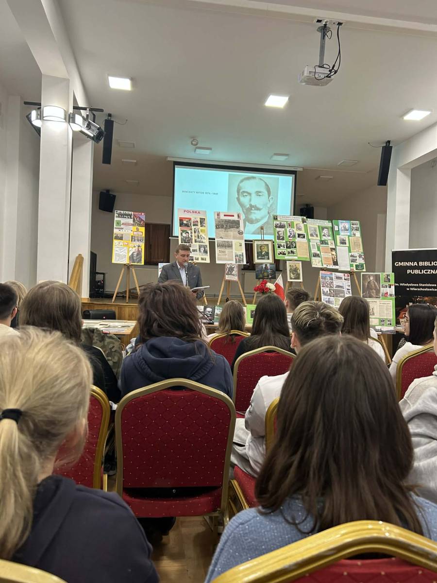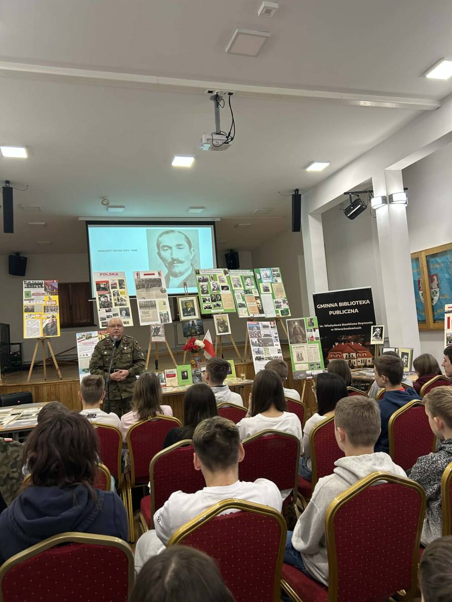 Na zaproszenie Społecznego Uniwersytetu Ludowego im. Wincentego Witosa w Gminnej Bibliotece Publicznej w Wierzchosławicach odbyła się żywa lekcja historii. Uczniowie klasy szóstej mieli okazję uczestniczyć w prelekcji prowadzonej przez dr Romana Głowackiego na temat “Wincenty Witos – współtwórca niepodległości, obrońca Polski i chłopów.”