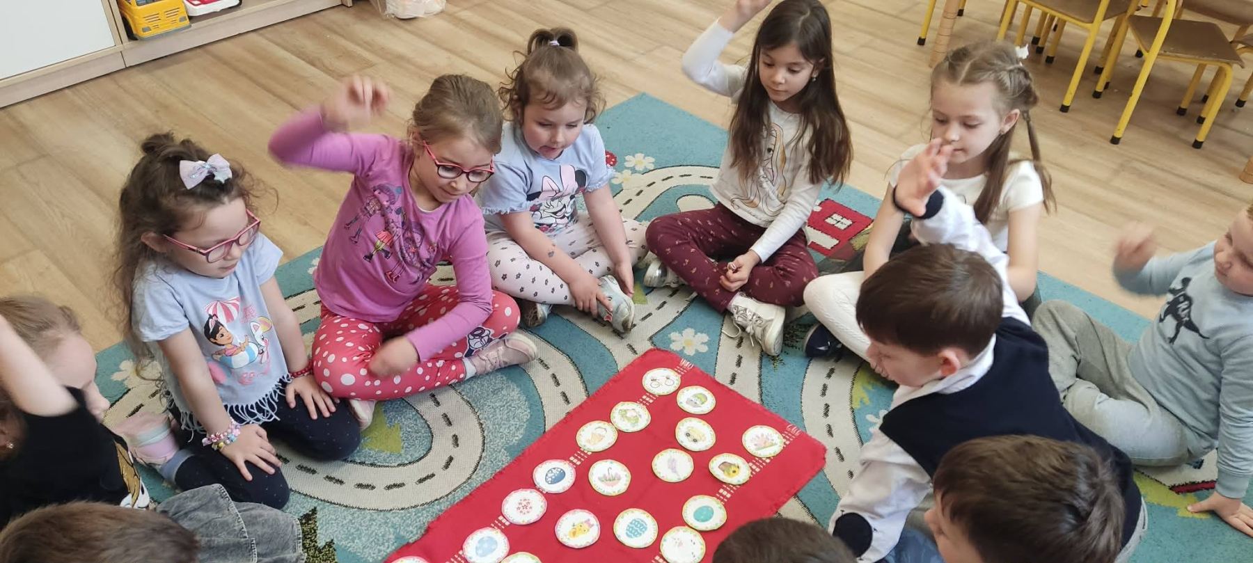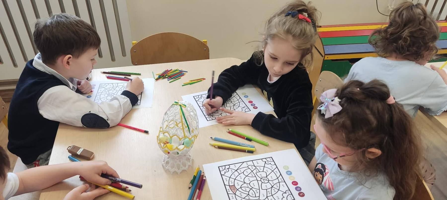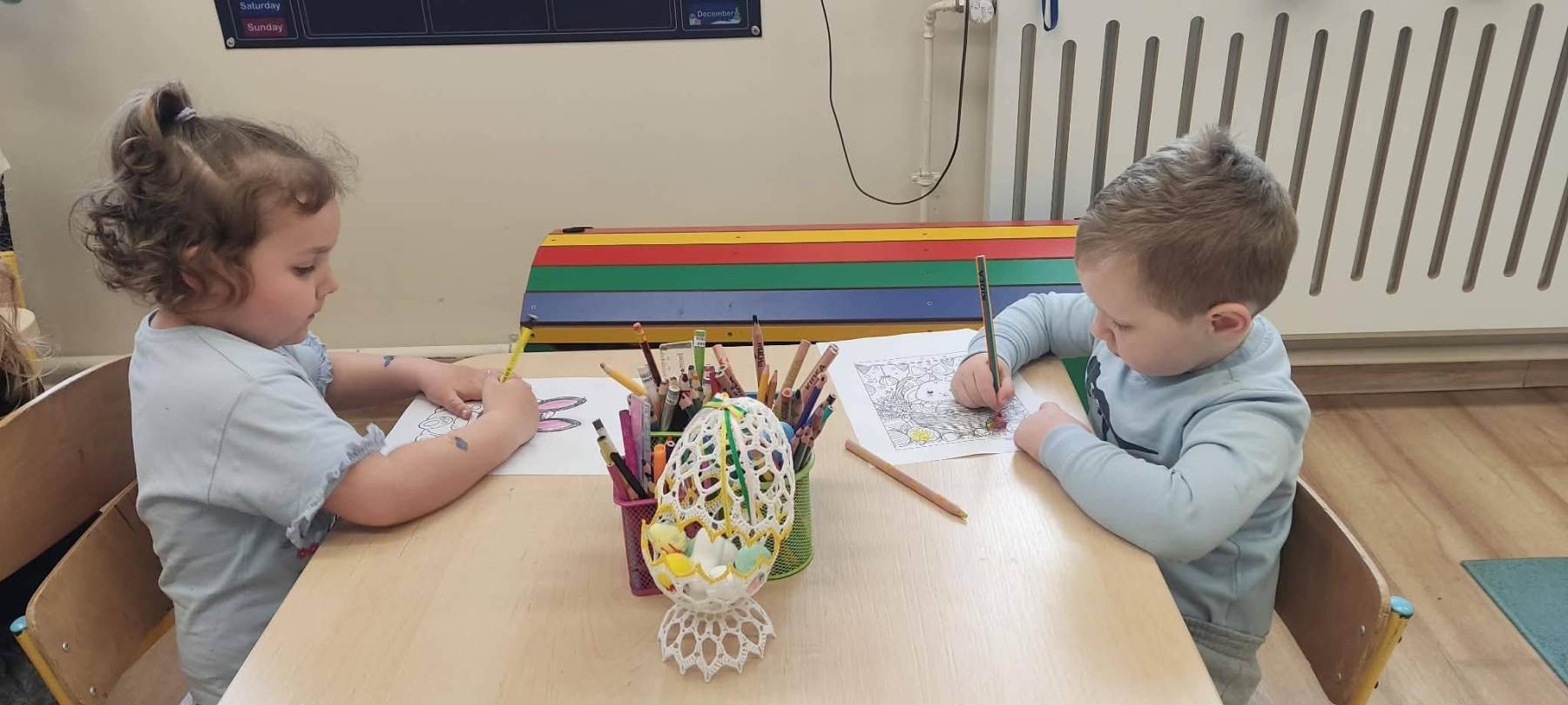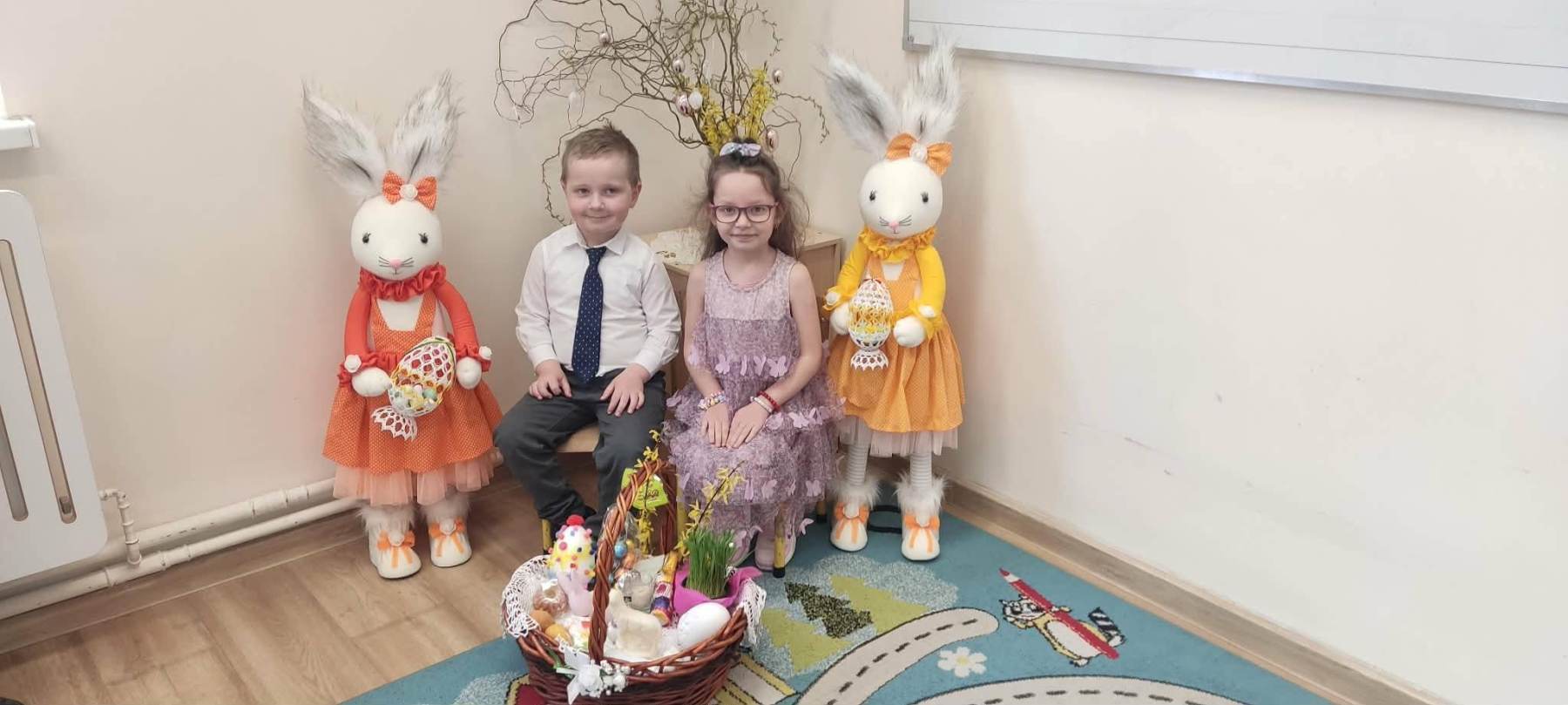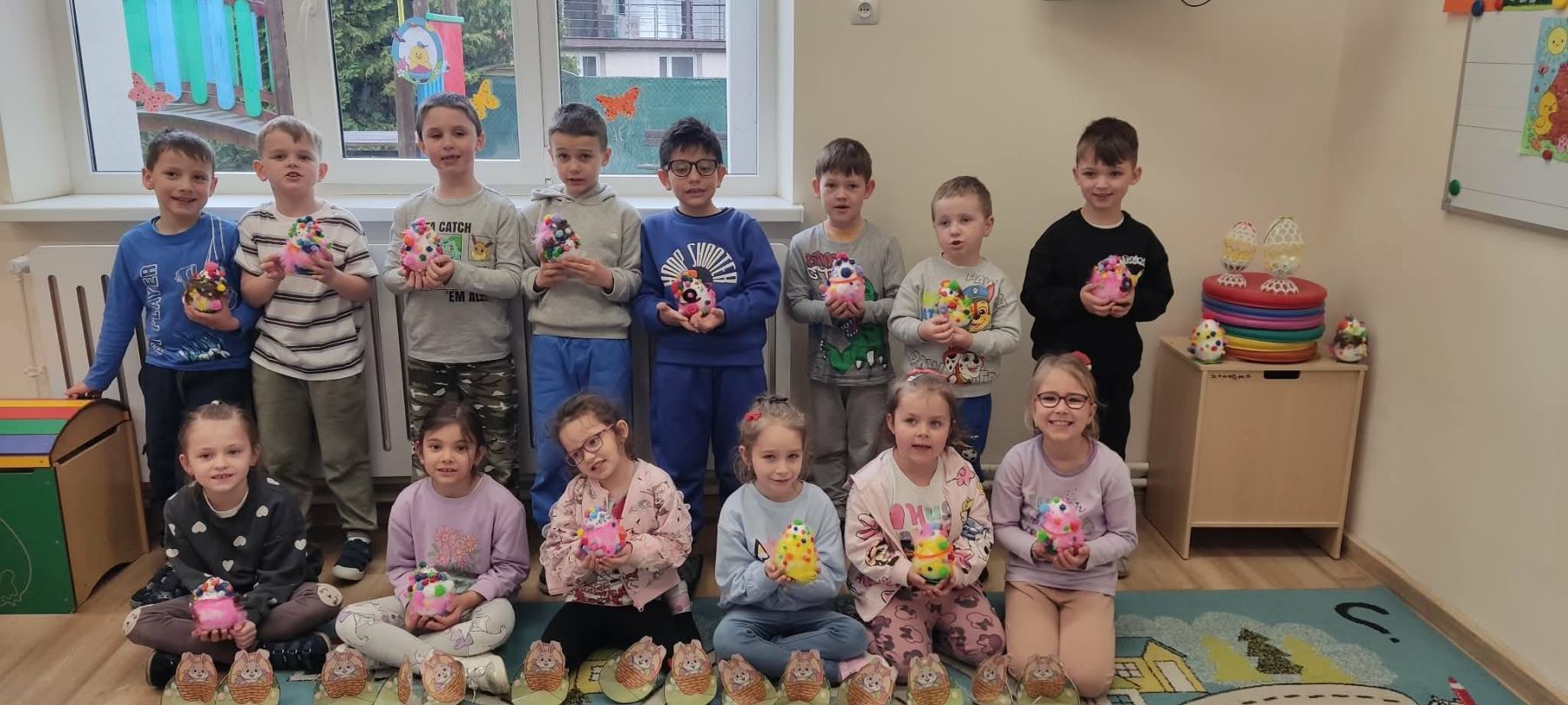 Już za parę dni nadejdą długo oczekiwane przez wszystkich Święta Wielkanocne. Przedszkolaki również przygotowują się do tych świąt. W naszym przedszkolu czuć już podniosłą wielkanocną atmosferę. Dzieci poznają polskie tradycje wielkanocne czyli: malowanie pisanek, święcenie koszyczków, śniadanie wielkanocne podczas, którego dzielimy się jajkiem – symbolem życia, śmigus – dyngus. Z zapałem wykonują świąteczne ozdoby np. pisanki, wykorzystując różnorodne materiały. Powstało też wiele starannie wykonanych kolorowanek o tematyce wielkanocnej. Nie zabrakło wśród nich: kurczaczków , zajączków i pełnych pyszności koszyczków wielkanocnych. Dzieci chętnie uczyły się wielu piosenek związanych z Wielkanocą. Jedną z nich jest piosenka pt. ,,Wielkanocny koszyczek”, którą dedykujemy tym Wszystkim, którzy z wiarą, nadzieją i miłością oczekują na przyjście Zmartwychwstałego Chrystusa.