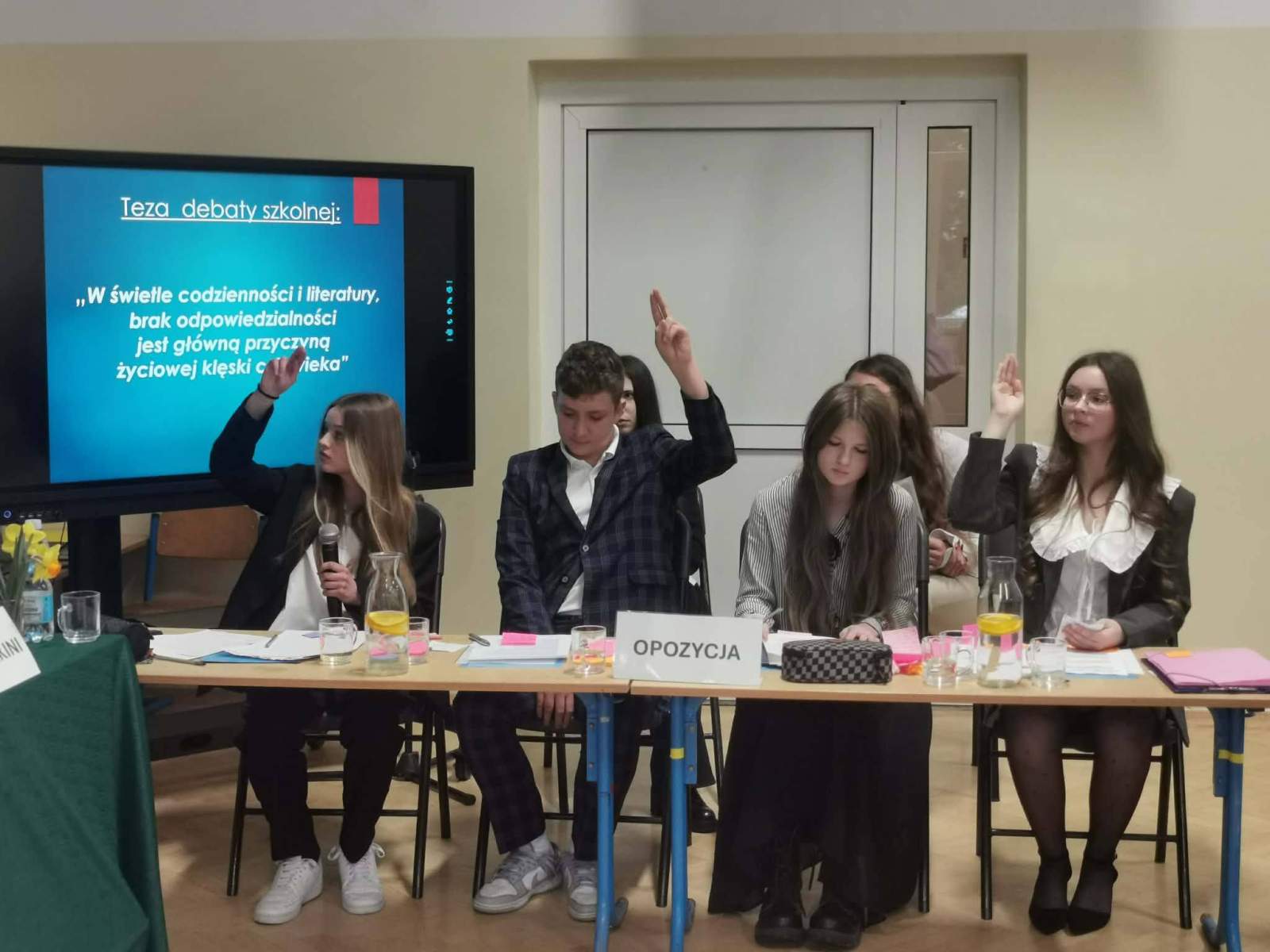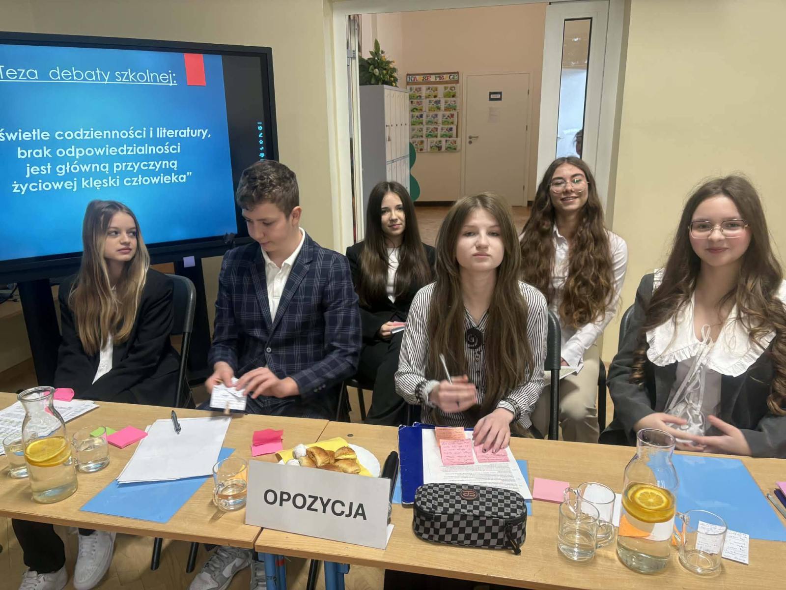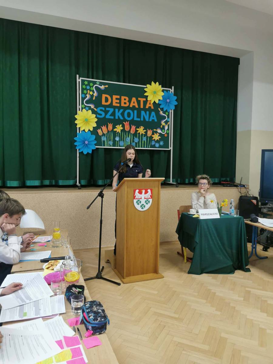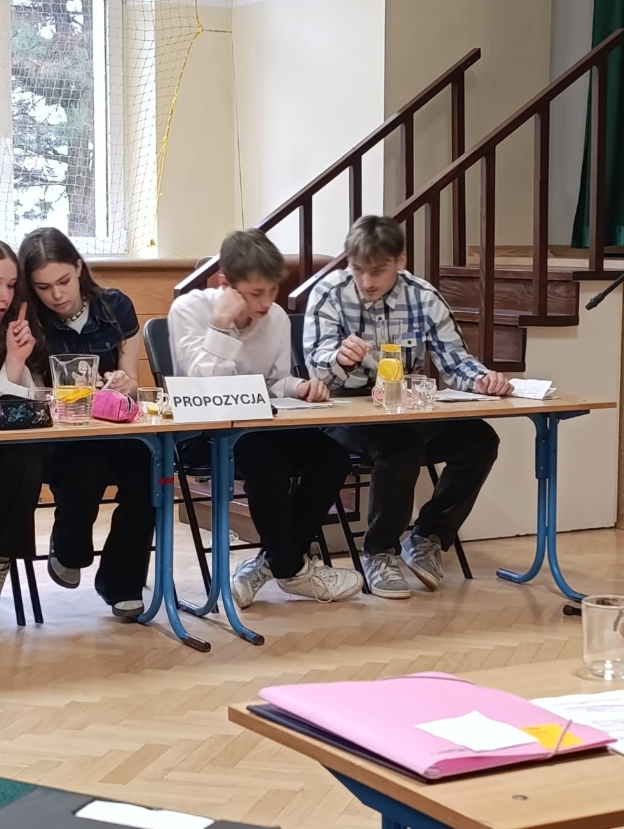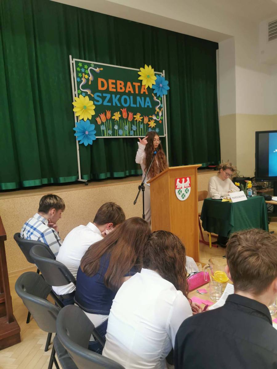 DEBATA SZKOLNA – gorąca atmosfera i mocne argumenty! Za nami debata szkolna „W świetle codzienności i literatury, brak odpowiedzialności jest główną przyczyną klęski człowieka” Dziś w naszej szkole zmierzyliśmy się z tą trudną tezą. Szukaliśmy argumentów w literackich klasykach i… w naszym własnym życiu. Od antycznych tragedii po współczesne błędy – debata pokazała, że każda decyzja ma swoją wagę. Serdeczne podziękowania za udział w debacie składamy na ręce Pani Agnieszki Poliwki, Pani Barbary Oćwiei, Pani Marzeny Padło, Pani Małgorzaty Dąbrowskiej oraz Pana Dawida Mocnego.