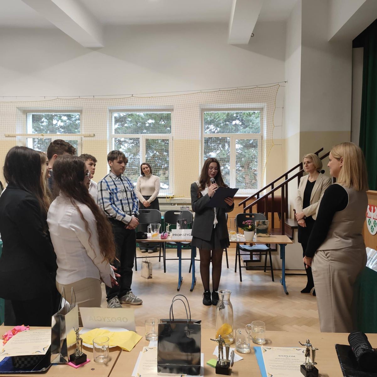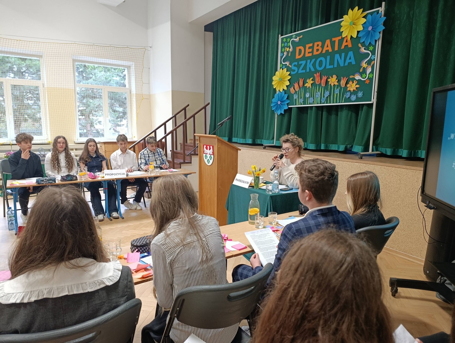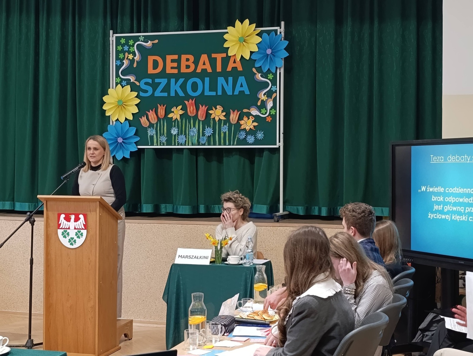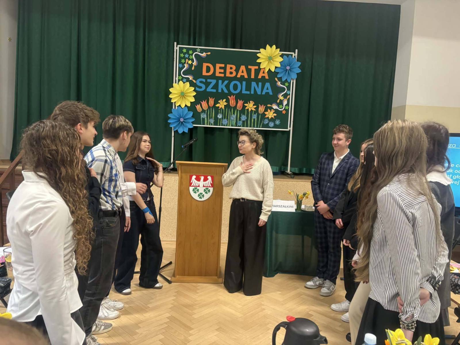 DEBATA SZKOLNA – gorąca atmosfera i mocne argumenty! Za nami debata szkolna „W świetle codzienności i literatury, brak odpowiedzialności jest główną przyczyną klęski człowieka” Dziś w naszej szkole zmierzyliśmy się z tą trudną tezą. Szukaliśmy argumentów w literackich klasykach i… w naszym własnym życiu. Od antycznych tragedii po współczesne błędy – debata pokazała, że każda decyzja ma swoją wagę. Serdeczne podziękowania za udział w debacie składamy na ręce Pani Agnieszki Poliwki, Pani Barbary Oćwiei, Pani Marzeny Padło, Pani Małgorzaty Dąbrowskiej oraz Pana Dawida Mocnego.