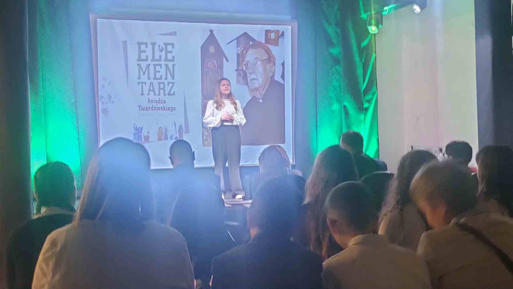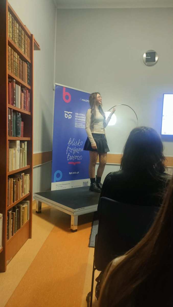 Już za nami Międzyszkolny Konkurs Recytatorski Poezji ks. Jana Twardowskiego organizowany przez Bibliotekę Pedagogiczną w Tarnowie. W piątek, 27 marca 2026 młodzi artyści z naszej szkoły Zuzanna Wiśniewski, Natalia Snopek, Adeliia Lysnikovska, Kacper Gdowski i Artur Wąs rywalizowali z w siedzibie biblioteki, mieszczącej się przy ul. Nowy Świat 30. Konkurencja była bardzo duża, gdyż do konkursu zgłosiło się ponad 100 uczniów. Miło nam poinformować, że w kategorii klas 7-8 wyróżnienie zdobyła Adeliia Lysnikovska. Gratulujemy wszystkim wspaniałych występów. Wydarzenie to było nie tylko okazją do zaprezentowania swoich umiejętności i pasji do poezji, ale także przestrzenią do nauki i wzajemnej inspiracji. To była także szansa na poznanie twórczości ks. Jana Twardowskiego w nowym świetle, co z pewnością wzbogaci literackie doświadczenie naszych młodych wspaniałych recytatorów.