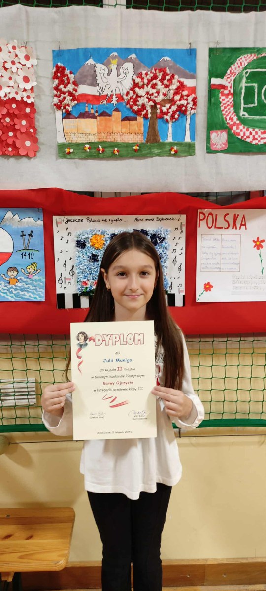 Miło nam poinformować, że uczennice naszej szkoły zostały laureatkami Gminnego Konkursu Plastycznego „Barwy ojczyste”. Julia zajęła 2 miejsce w kat. klas III, a Justyna 3 miejsce w kat. klas II. Serdecznie gratulujemy i życzymy dalszych sukcesów!