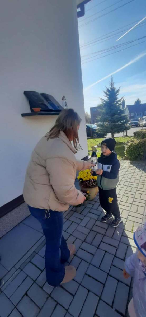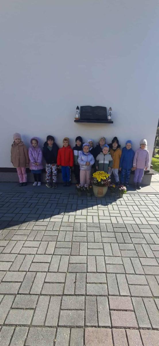 W przeddzień Święta Wszystkich Świętych przedszkolaki upamiętniły postać Patrona naszej szkoły ks. Jana Twardowskiego . Złożyły kwiaty i zapaliły znicze pod tablicą pamiątkową z wizerunkiem księdza Jana.