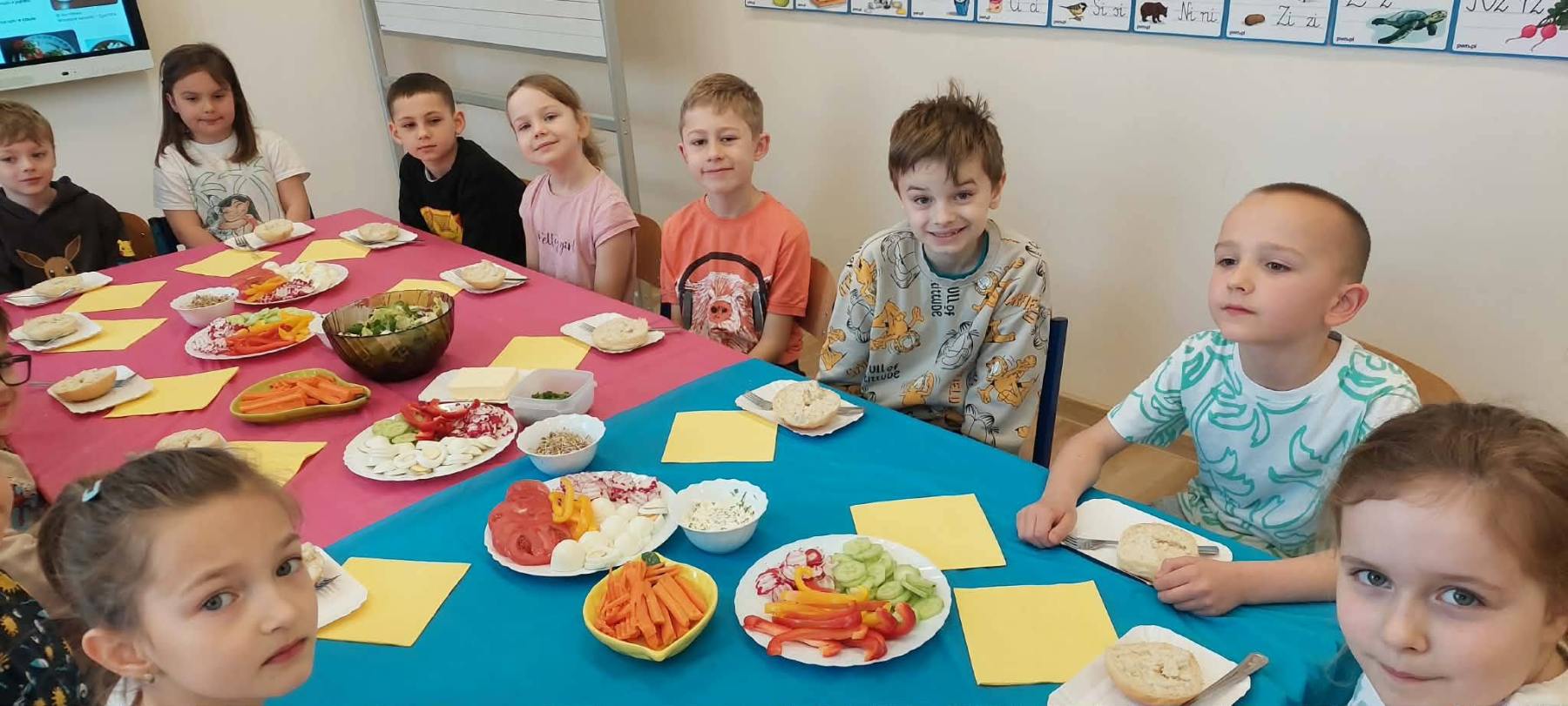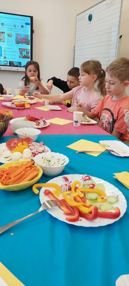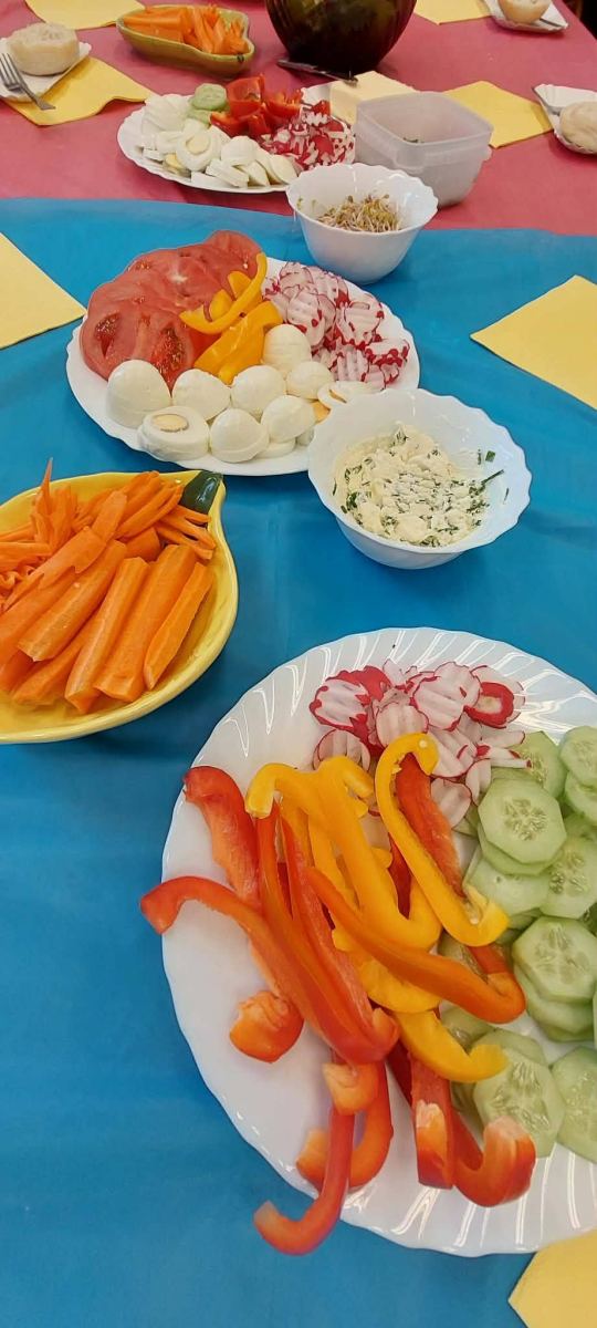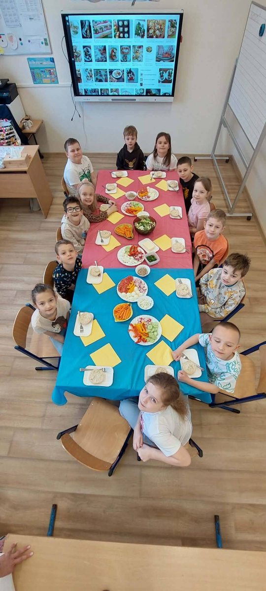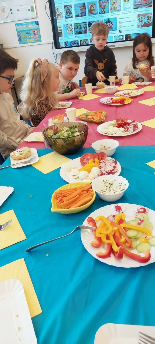 W piątkowy poranek uczniowie klasy I przygotowywali zdrowe, wiosenne i kolorowe śniadanie. Wykorzystali do tego wartościowe produkty, takie jak świeże warzywa, jajka, biały ser oraz wiele innych zdrowych składników. Śniadanie zostało zorganizowane w ramach działań profilaktyki zdrowego odżywiania. Podczas zajęć dzieci dowiedziały się, jak ważne jest właściwe komponowanie posiłków oraz jakie produkty sprzyjają zachowaniu zdrowia, energii i jasności umysłu. Wspólne przygotowywanie posiłku było nie tylko świetną zabawą, ale także cenną lekcją, która z pewnością zaprocentuje w codziennych wyborach żywieniowych uczniów.