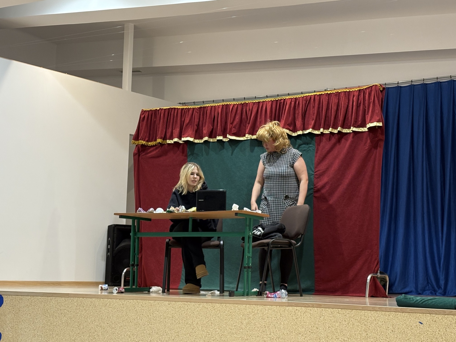 Zapisane w milczeniu” to tytuł spektaklu profilaktycznego, który został zaproszony do naszej szkoły. W widowisku brali udział uczniowie klas IV-VIII. Przedstawienie obrazowało sytuację przemocy domowej. Po nim odbył się krótki komentarz mówiący o tym, że zawsze należy reagować, udzielać zainteresowania, wsparcia, pomocy. Ta krótka lekcja dała wielu osobom do myślenia.