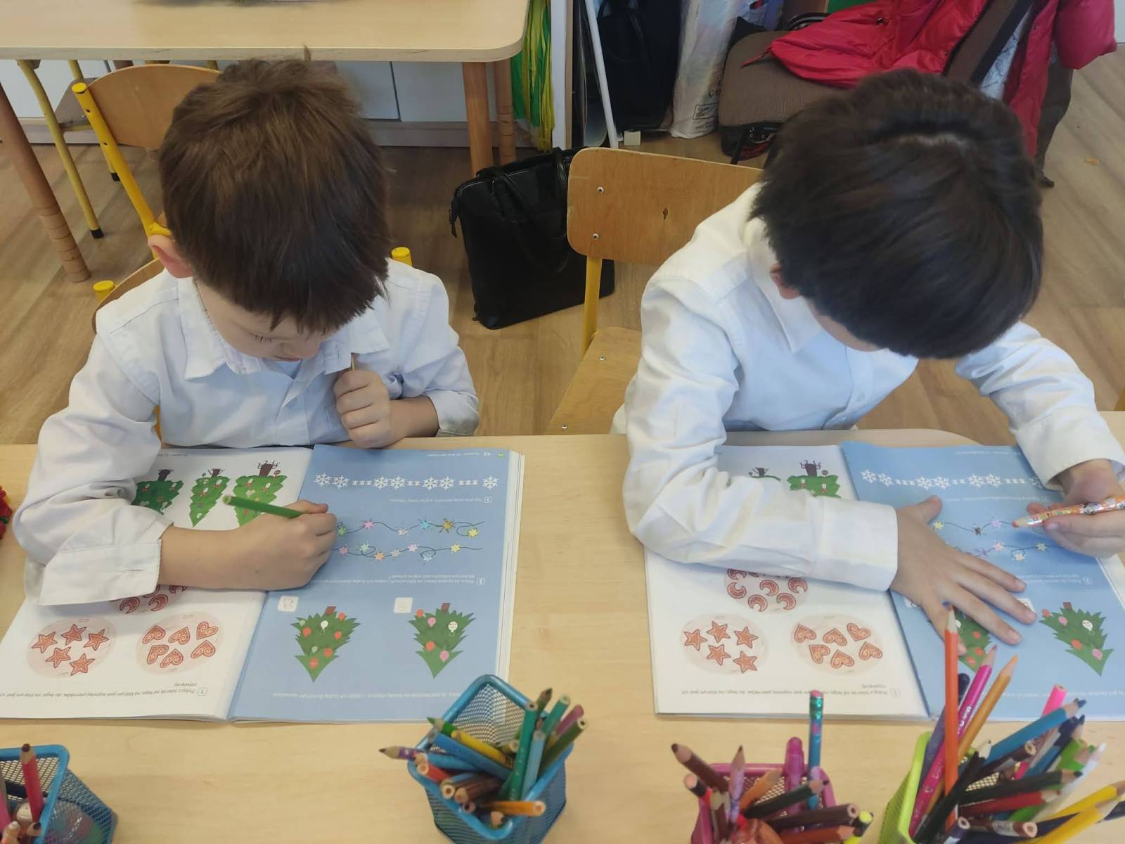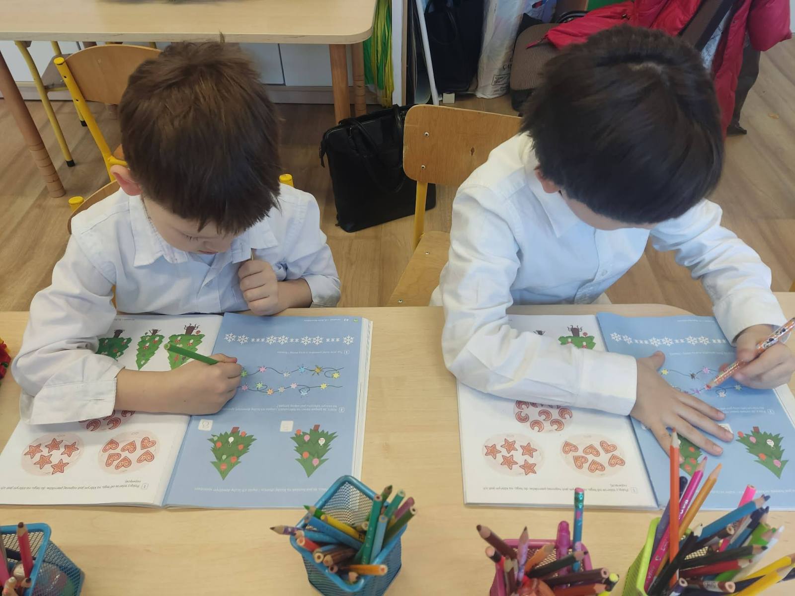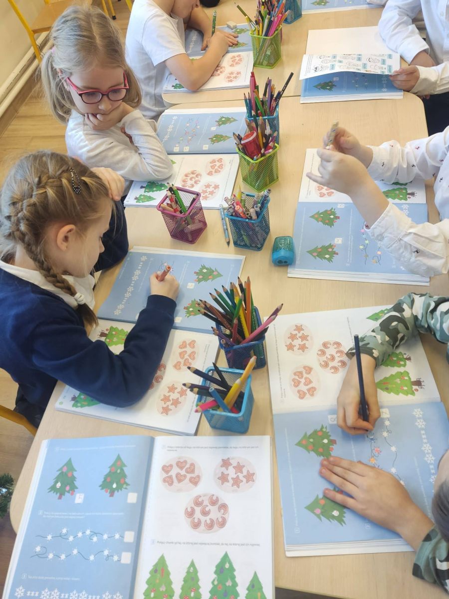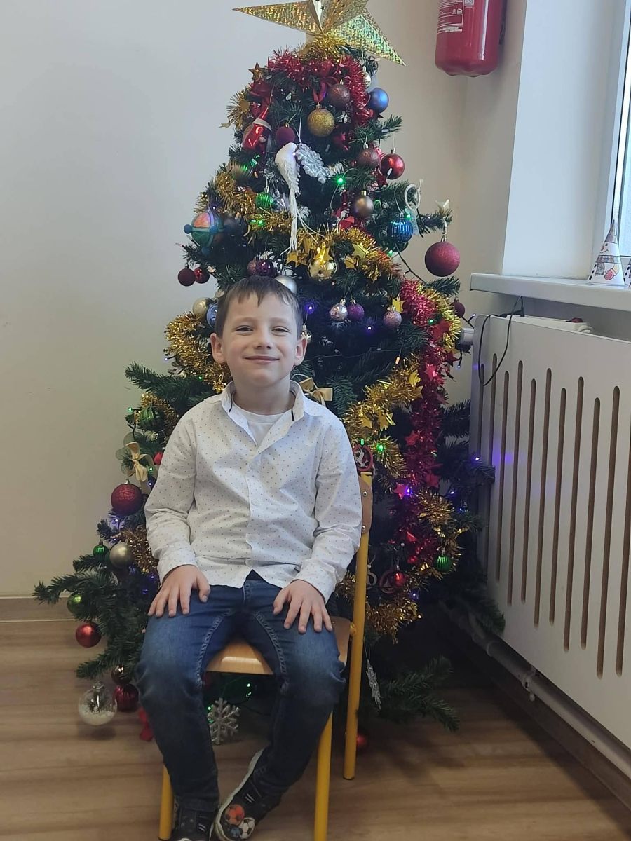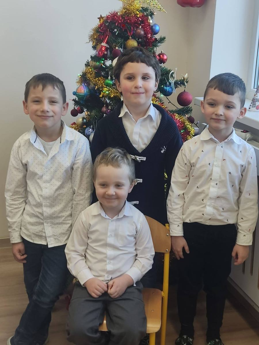 Dziś dzieci z oddziału przedszkolnego spotkały się przy wigilijnym, pięknie przystrojonym stole. Po wspólnej modlitwie i łamaniu się opłatkiem oraz życzeniach świątecznych składanych sobie nawzajem przystąpiliśmy do zjedzenia pysznych ciast. Przy dźwiękach kolęd i wspólnych rozmowach przy wigilijnym stole szybko minął nam czas. W tym świątecznym dniu nie zabrakło też wspólnych zdjęć przy wigilijnym stole i klasowej choince oraz ciekawych zajęć związanych z przygotowaniami do Świąt Bożego Narodzenia.