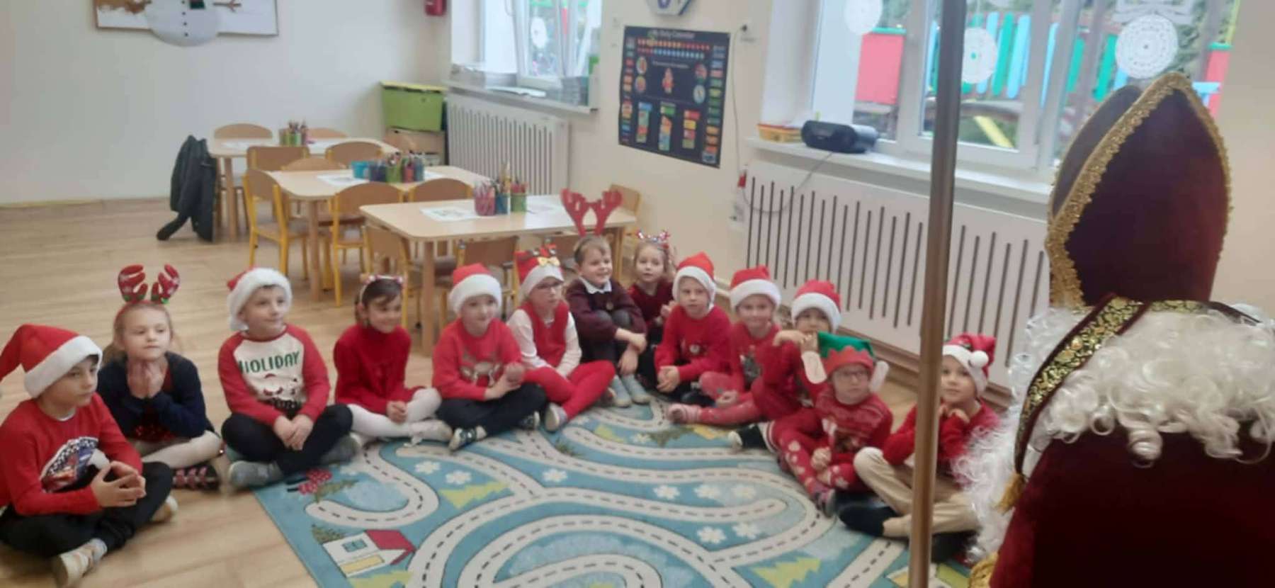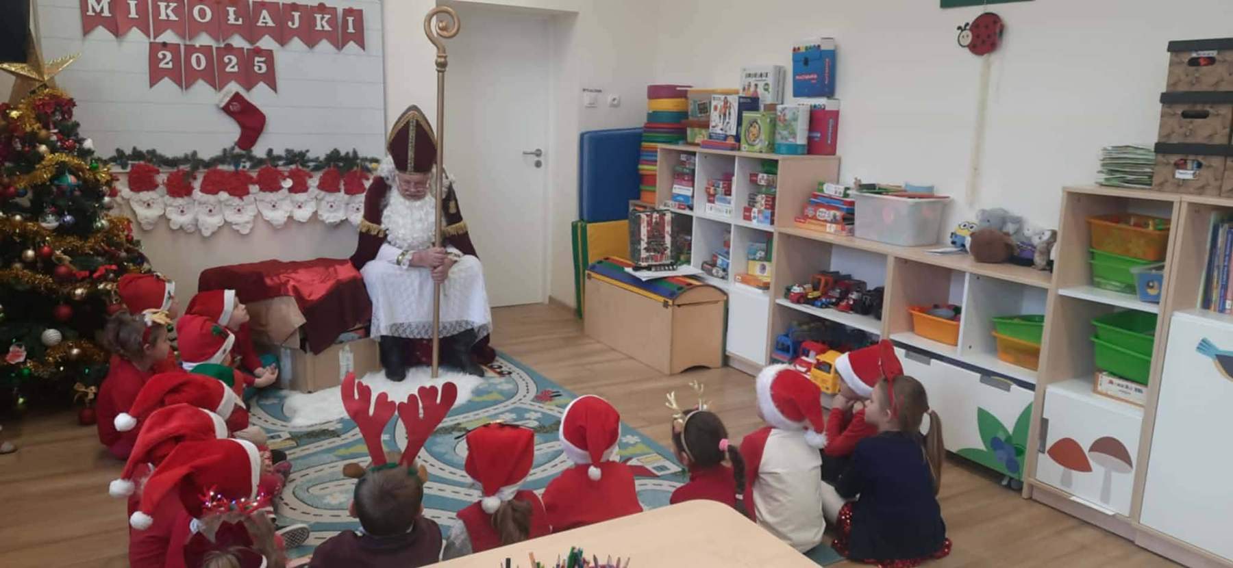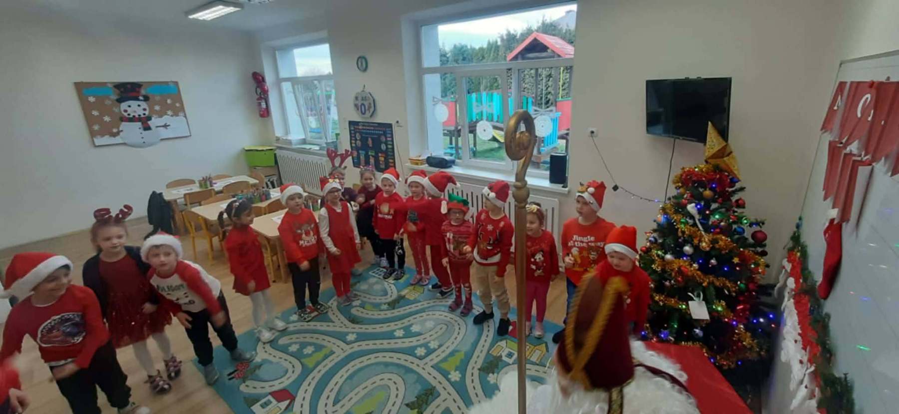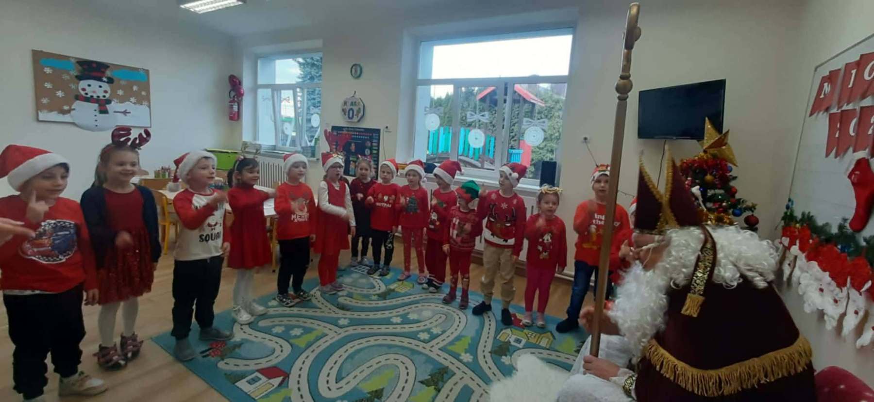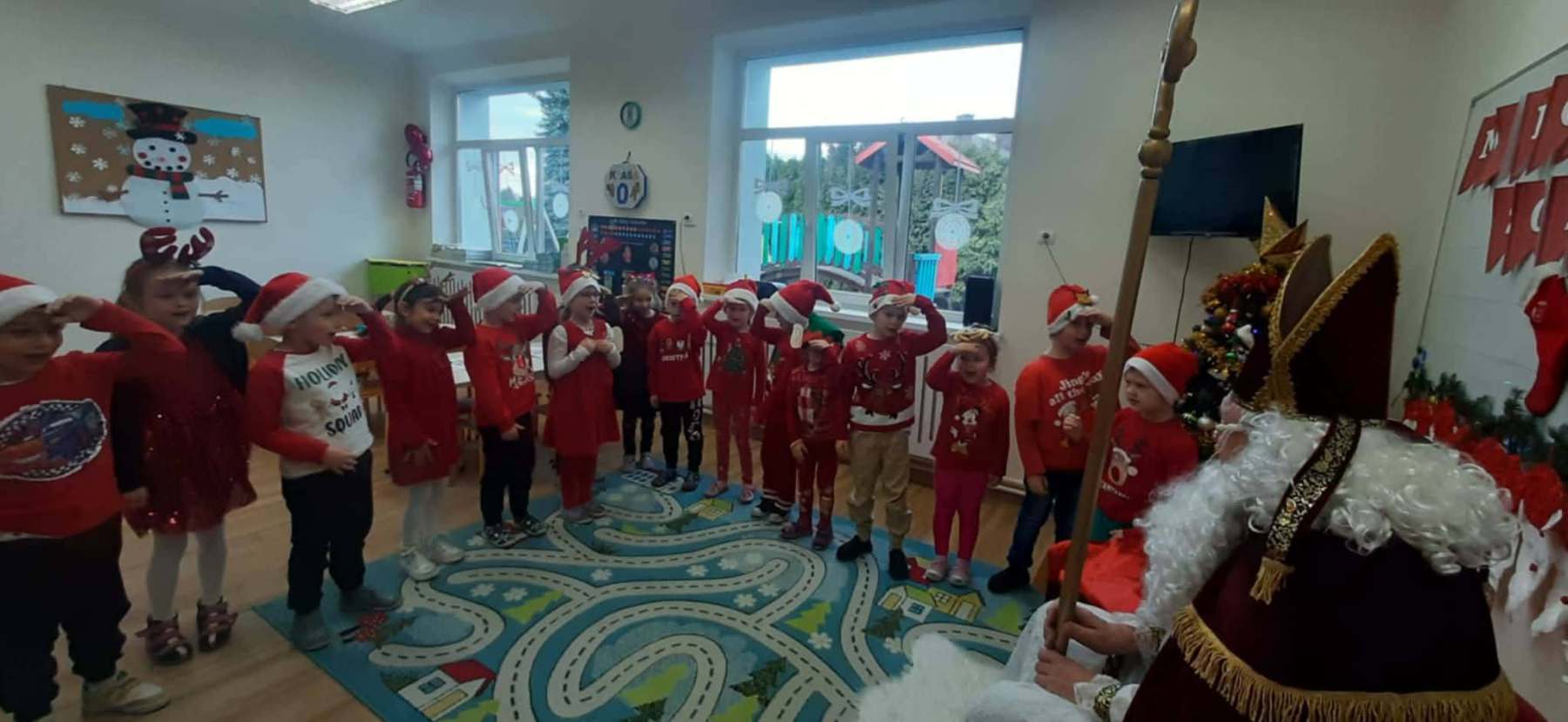 Dziś nadszedł długo oczekiwany przez przedszkolaków dzień odwiedzin Świętego Mikołaja, na który oczekiwały z niecierpliwością. I… spełniło się ich marzenie. Przybył Św. Mikołaja dzieci przywitały go piosenką, którą uczyły się specjalnie na tę okazję. Piosenka i zaprezentowany do niej taniec bardzo mu się spodobały. Potem dzieci zaczęły zadawać Mikołajowi różne pytania, a on cierpliwie na nie odpowiadał. Nastąpił wreszcie moment rozdawania przez Mikołaja prezentów dla wszystkich grzecznych dzieci. Na koniec przedszkolaki robiły sobie pamiątkowe zdjęcia z wyjątkowym gościem. Dzieci są bardzo zadowolone z prezentów i już nie mogą doczekać się kolejnej wizyty Św. Mikołaja. Dziękujemy i zapraszamy do nas ponownie za rok. Obiecujemy być grzeczni.