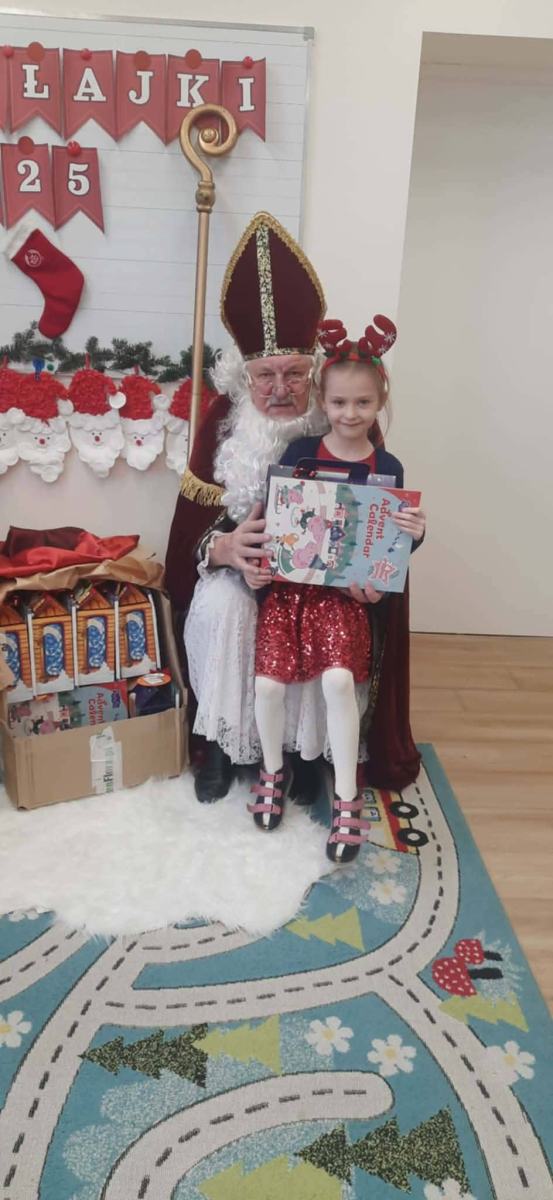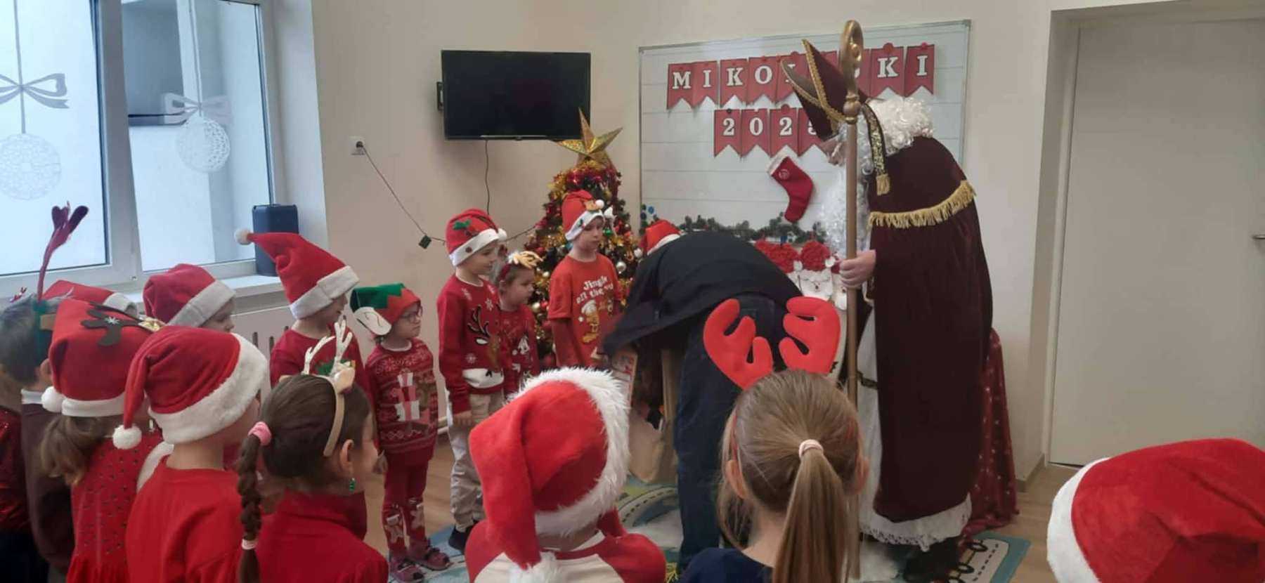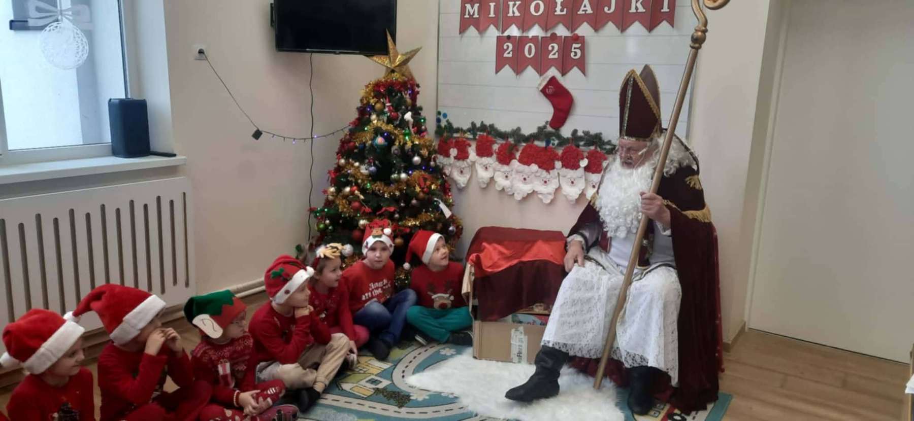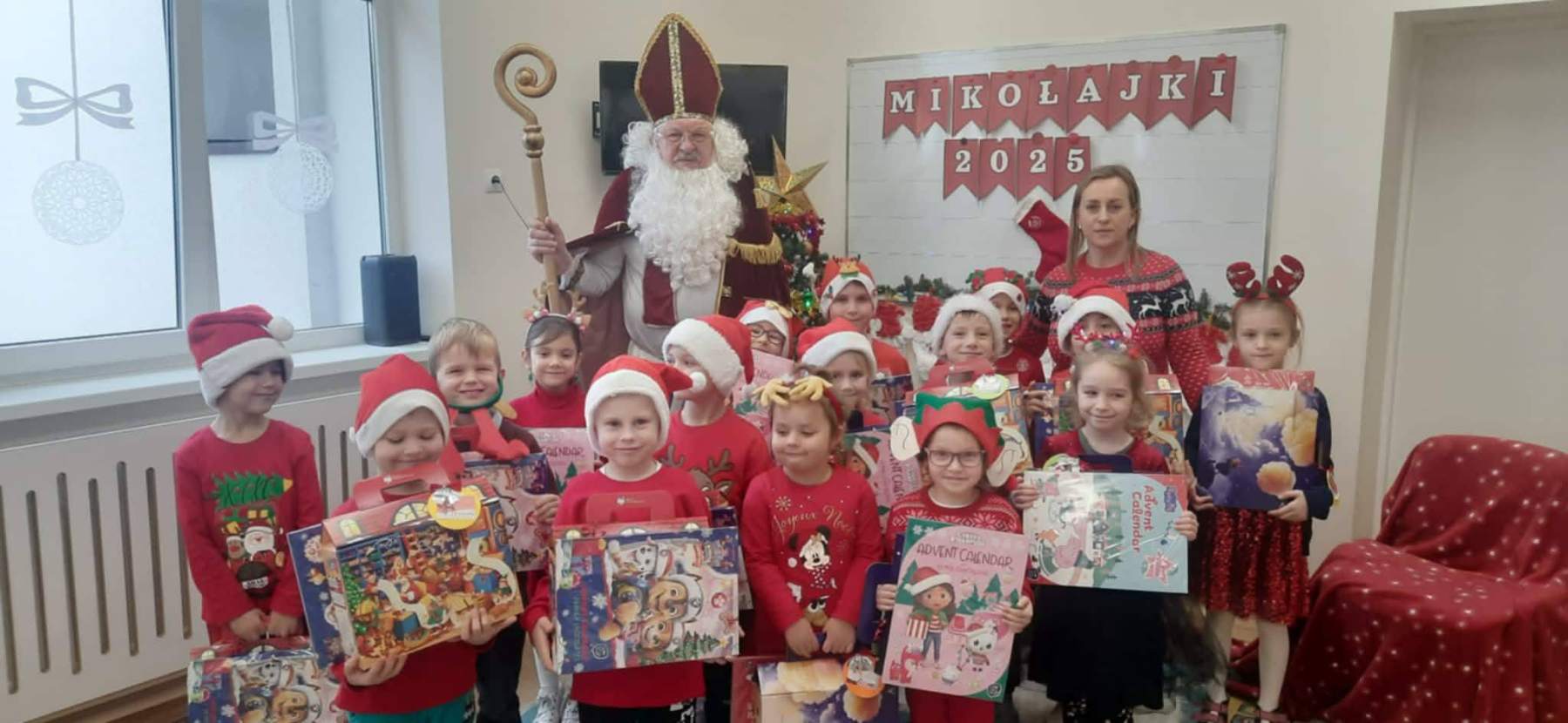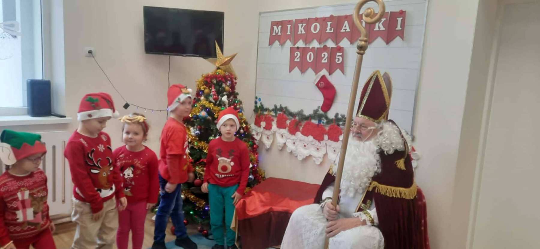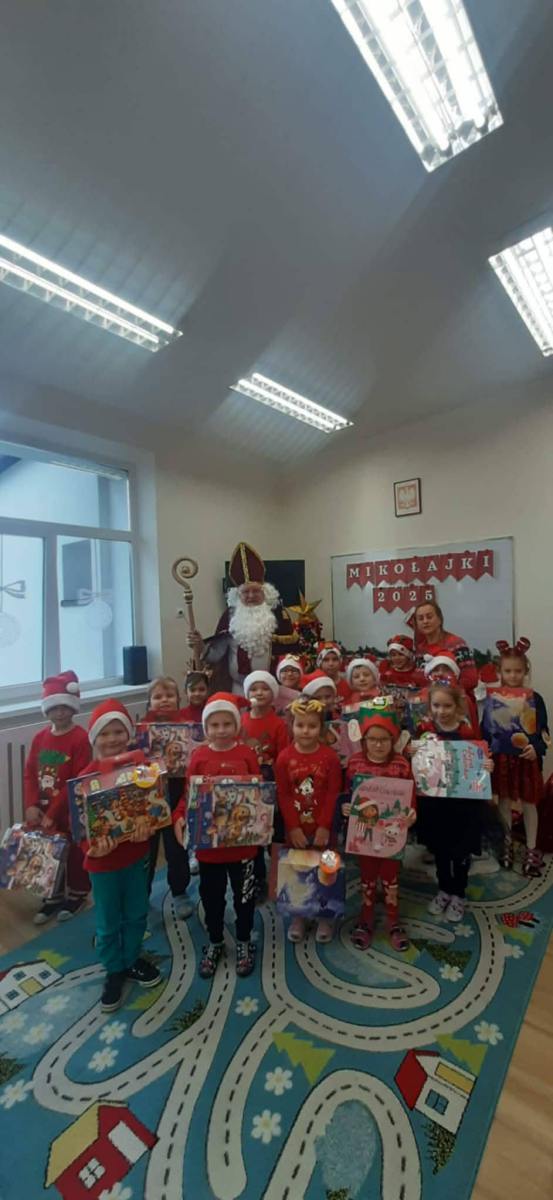 Dziś nadszedł długo oczekiwany przez przedszkolaków dzień odwiedzin Świętego Mikołaja, na który oczekiwały z niecierpliwością. I… spełniło się ich marzenie. Przybył Św. Mikołaja dzieci przywitały go piosenką, którą uczyły się specjalnie na tę okazję. Piosenka i zaprezentowany do niej taniec bardzo mu się spodobały. Potem dzieci zaczęły zadawać Mikołajowi różne pytania, a on cierpliwie na nie odpowiadał. Nastąpił wreszcie moment rozdawania przez Mikołaja prezentów dla wszystkich grzecznych dzieci. Na koniec przedszkolaki robiły sobie pamiątkowe zdjęcia z wyjątkowym gościem. Dzieci są bardzo zadowolone z prezentów i już nie mogą doczekać się kolejnej wizyty Św. Mikołaja. Dziękujemy i zapraszamy do nas ponownie za rok. Obiecujemy być grzeczni.