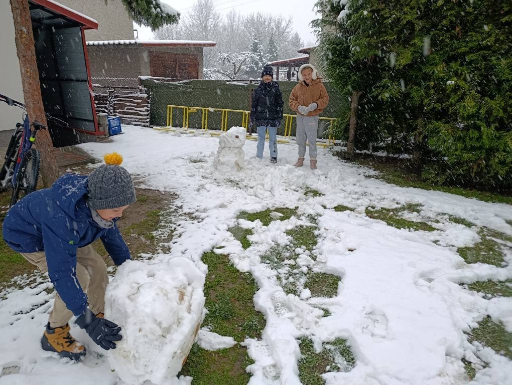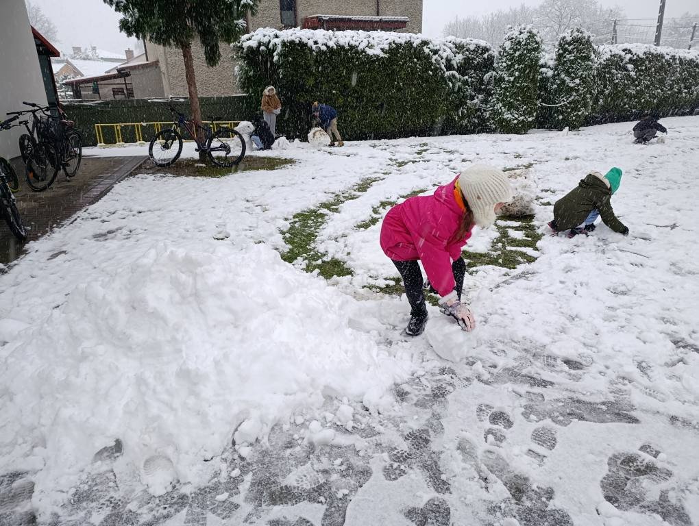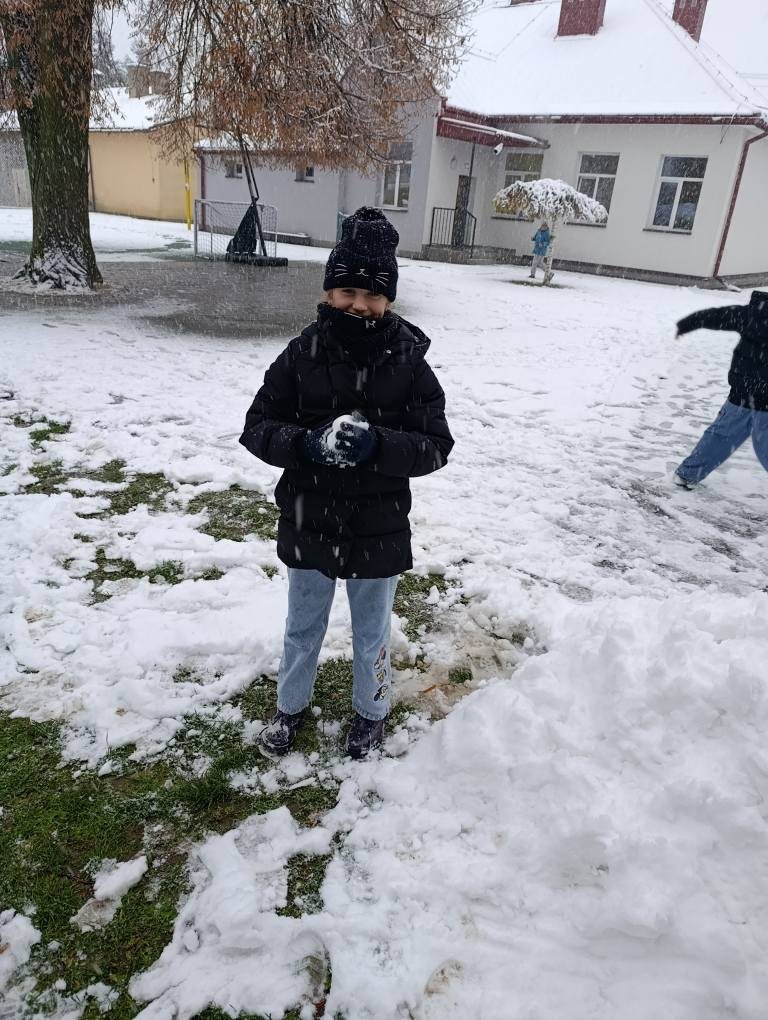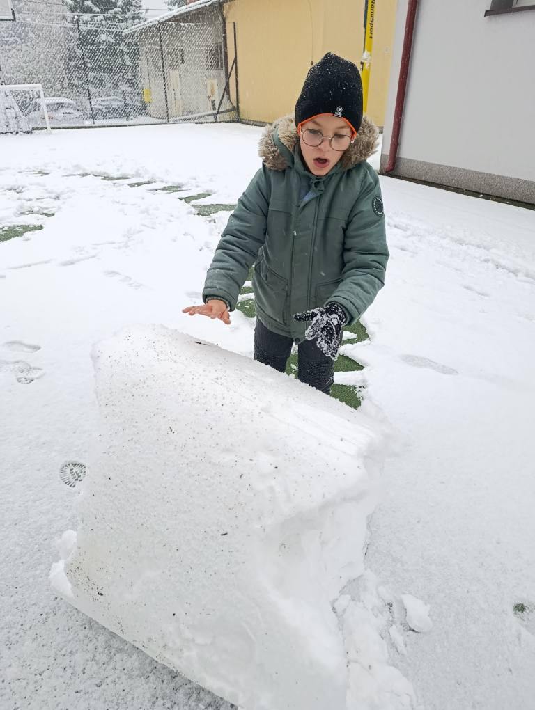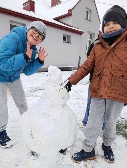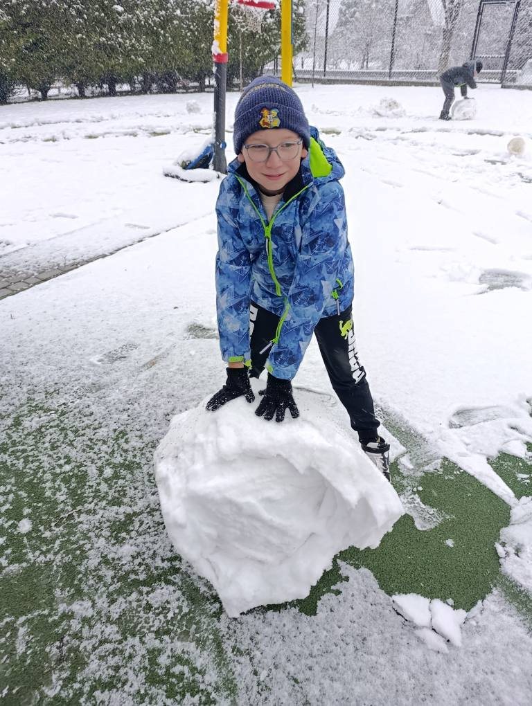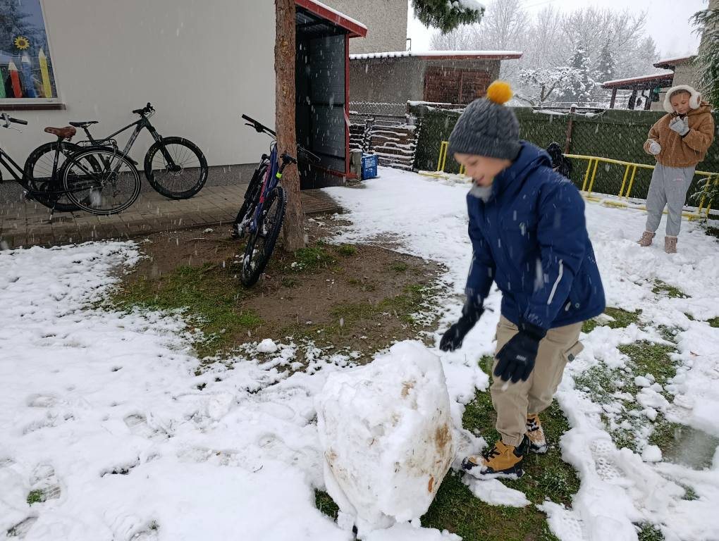 Jest śnieg!, zdecydowanie trzeba to wykorzystać. Uczniom klasy 3 udało się nawet ulepić pierwszego bałwanka!