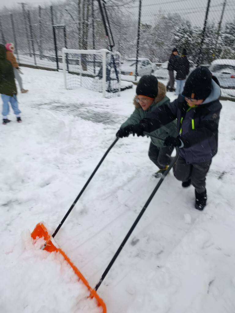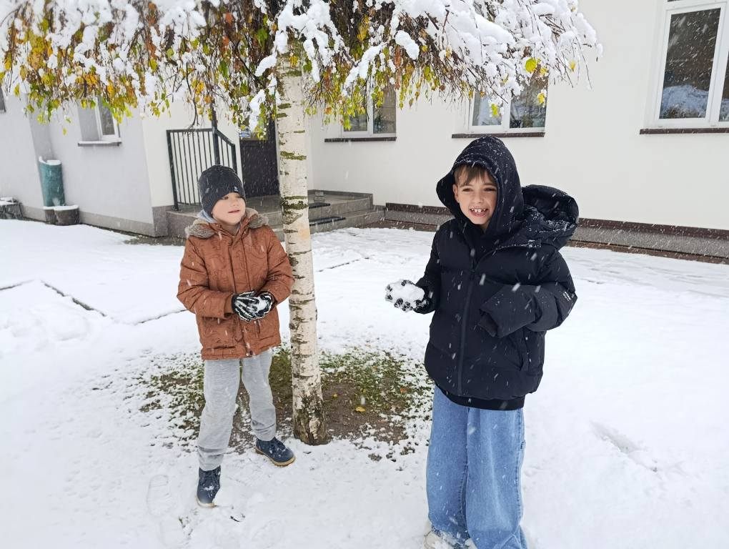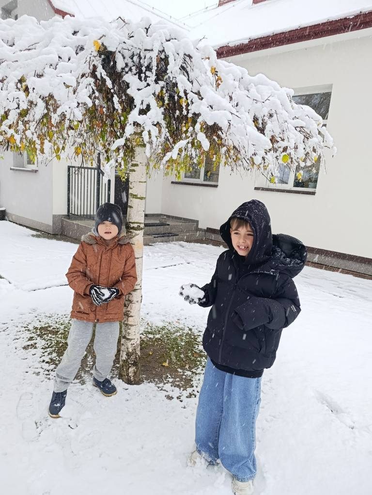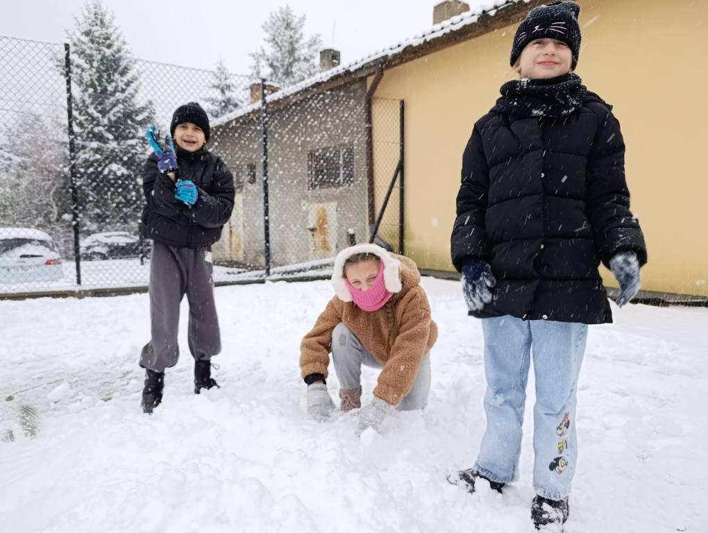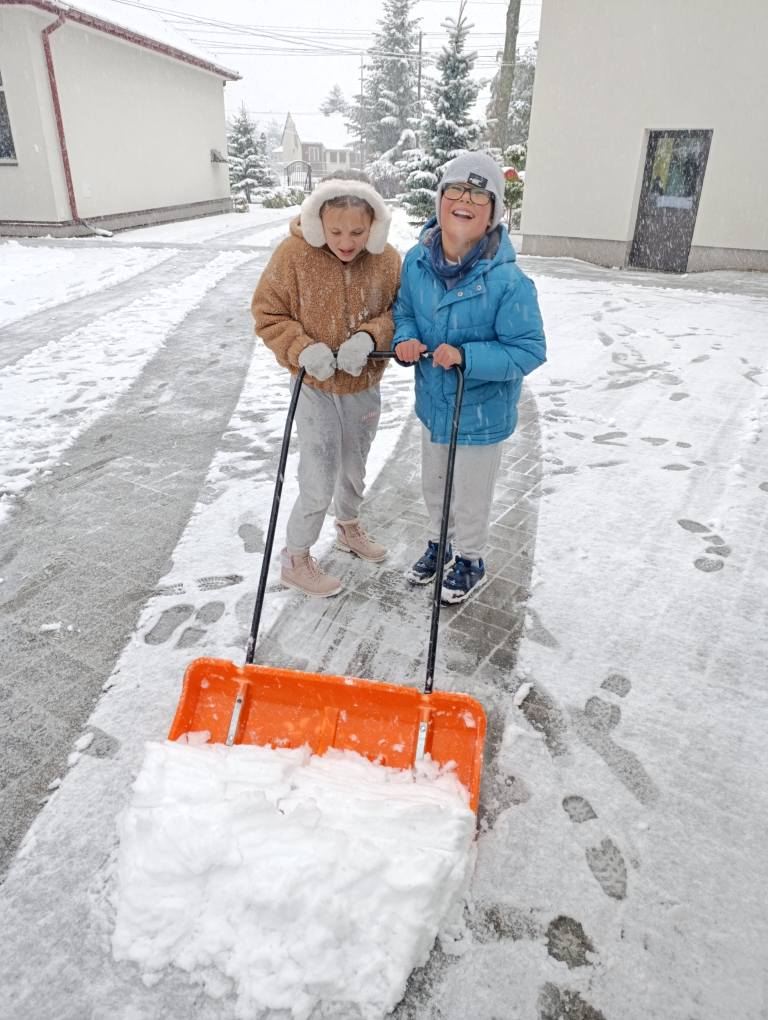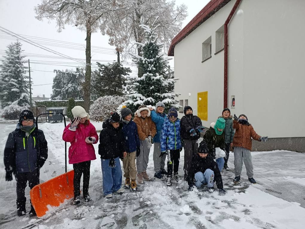 Jest śnieg!, zdecydowanie trzeba to wykorzystać. Uczniom klasy 3 udało się nawet ulepić pierwszego bałwanka!