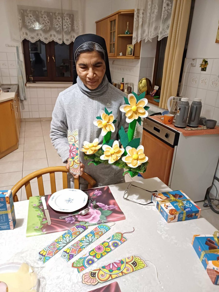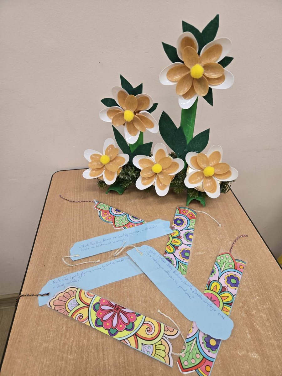 Kilka lat temu nasza Szkoła nawiązała miłą i owocną relację ze Zgromadzeniem Sióstr Kanosjanek w Gosławicach. Dnia 2 lutego siostry obchodziły Międzynorodowe Święto – Dzień Życia Konsekrowanego. Z tej to okazji, a także w podziękowaniu za otaczanie nas modlitewną opieką, dzieci uczęszczające na świetlicę szkolną przygotowały dla naszych drogich sióstr upominki. Były nimi zakładki wraz z zawartymi na nich życzeniami oraz kompozycja kwiatowa. Siostry Monika, Wiesława i Rose Mary z wielką radością i wdzięcznością przyjęły dziecięce prace obiecując dalsze modlitewne wsparcie.